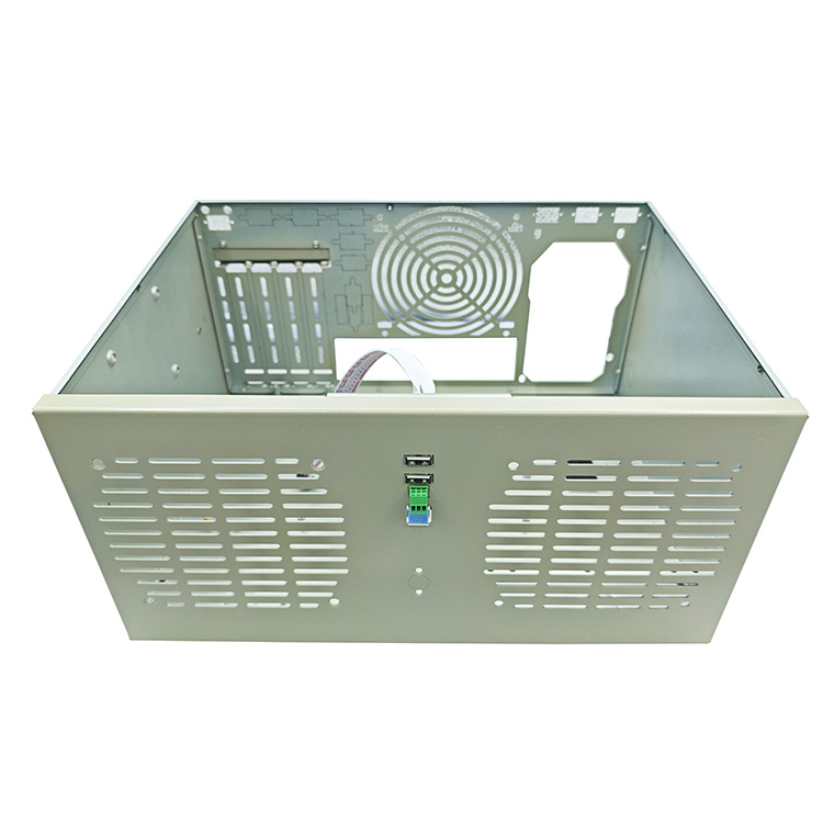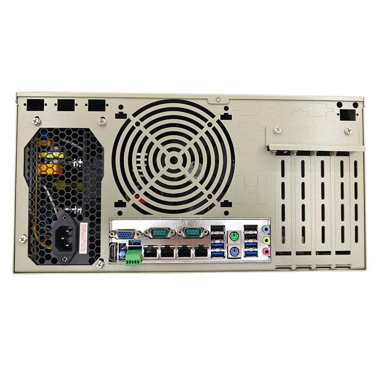 4U小款工控机箱,接口丰富,主板档片处还预留光源等接口及3.81-4P接线线端子3.81-4P接线端子弹性接电\开关机\复位\灯等信号;7个Com串口\单USB\双层USB\船型开关4合1敲落孔;LPT并口\DIO,天线、指示灯孔